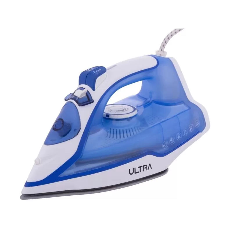 مكواة البخار Ultra موديل UI22BWE1 بقدرة 2200 وات وباللون الأزرق/الأبيض، مزوّدة بقاعدة سيراميك وسعة خزان ماء 300 مل مما يوفر أداء كيّ سريع وسلس لجميع الأقمشة.