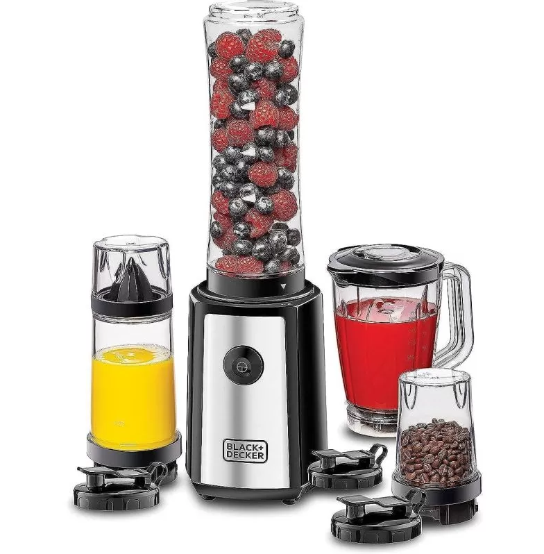 خلاط بلاك أند ديكر الرياضي الشخصي 300 وات SBX300BCG هو جهاز متعدد الوظائف 4 في 1 يضم 16 قطعة لتجهيز السموذي والطحن والتقطيع بسهولة تامة في تصميم صغير ومناسب للاستخدام اليومي.