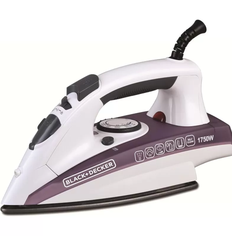 ماكينة كيّ بالبخار من BLACK+DECKER، موديل X1750‑B5 بقدرة 1750 واط ، بقاعدة سيراميك/غير لاصقة مُعزّزة، مزوّدة بخاصية التنظيف الذاتي (Self‑Clean) ونظام منع التنقيط (Anti‑Drip) لتجربة كيّ مريحة وأكثر أمانًا.