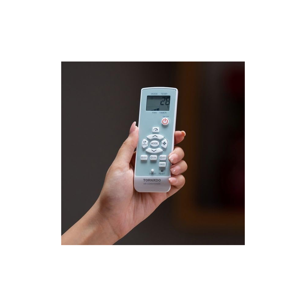 تكييف تورنيدو بقدرة 1.5 حصان، يعمل بنظام التبريد فقط، مزوَّد بتقنية التشغيل والإيقاف لتوفير تبريد سريع وفعّال للمساحات الصغيرة والمتوسطة. يتميز بتصميم أنيق باللون الأبيض، مع شاشة رقمية لسهولة التحكم. يحتوي على خاصية التأرجح التلقائي لتوزيع الهواء بشكل متساوٍ في الغرفة. يتميز بوظيفة التنظيف التلقائي للحفاظ على جودة الهواء داخل الوحدة.