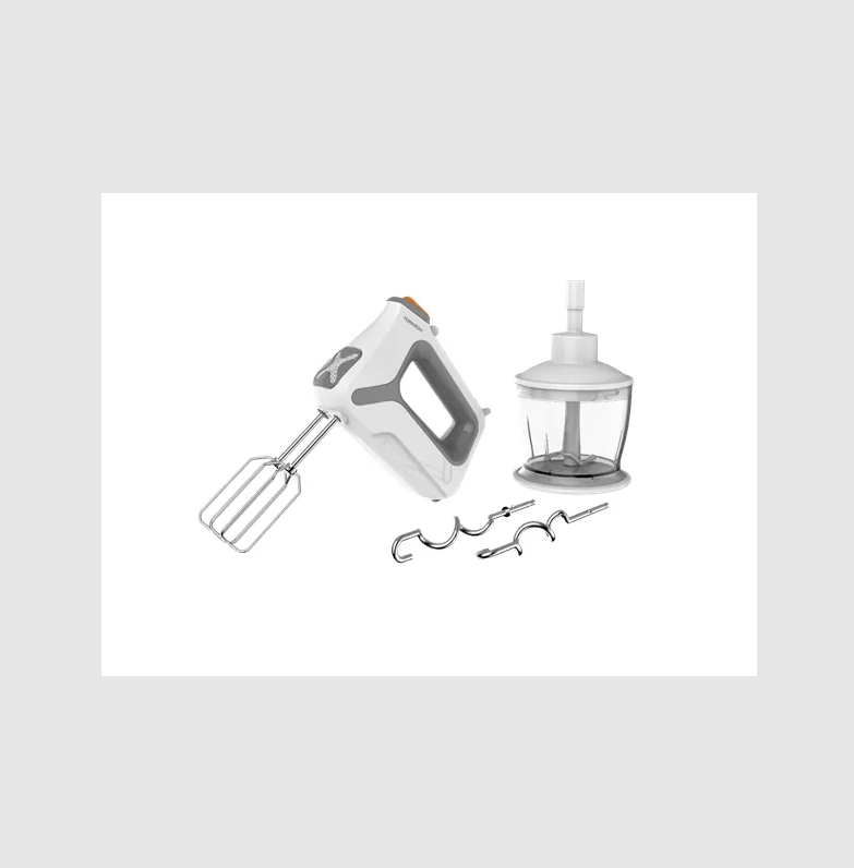 مضرب بيض من Tornado، موديل THM‑400SS، بقوة 400 وات، باللون الأبيض، مزوّداً بكُبة (قطّاعة/مفرّمة) وخمسة سرعات لتحضير العجائن والخفق بسهولة وأناقة.