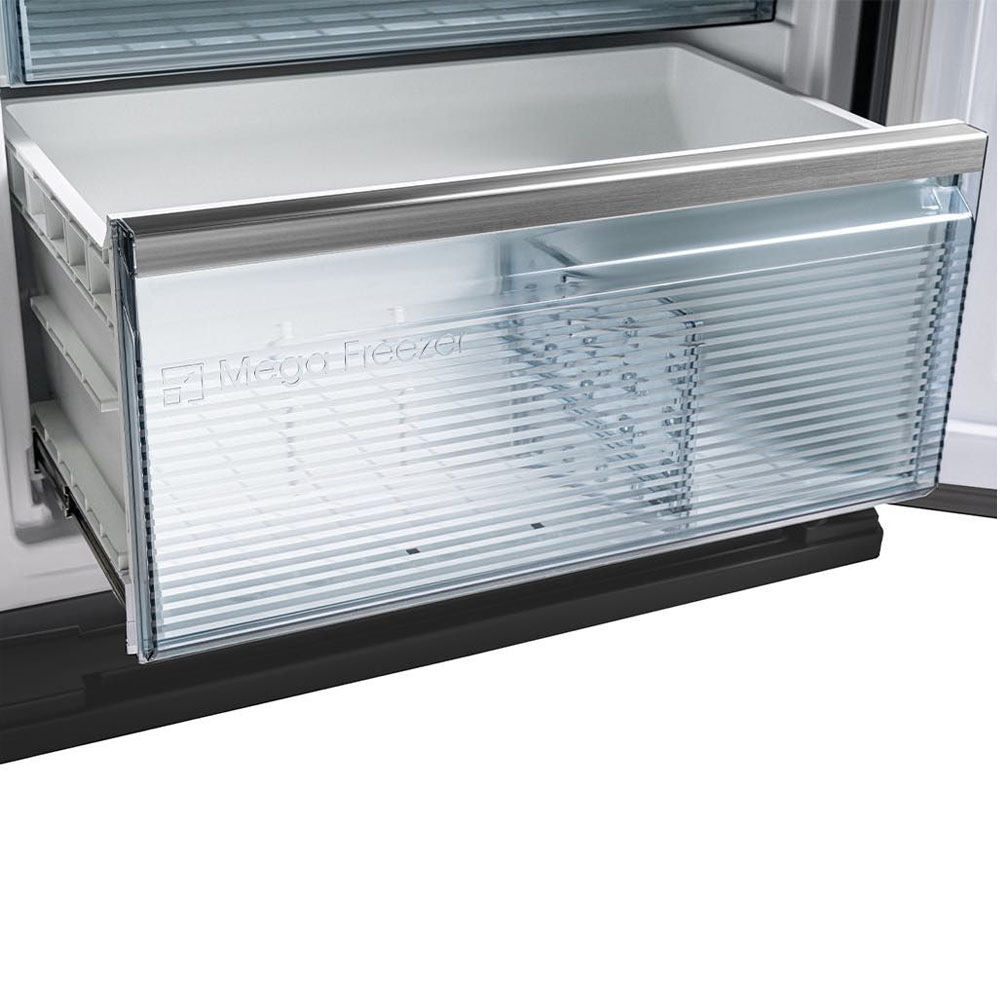 تتميز الثلاجة بتصميم داخلي يتيح تنظيم الأطعمة بشكل فعال، مع أرفف زجاجية شديدة التحمل وأدراج متعددة لتخزين مختلف أنواع الطعاموات