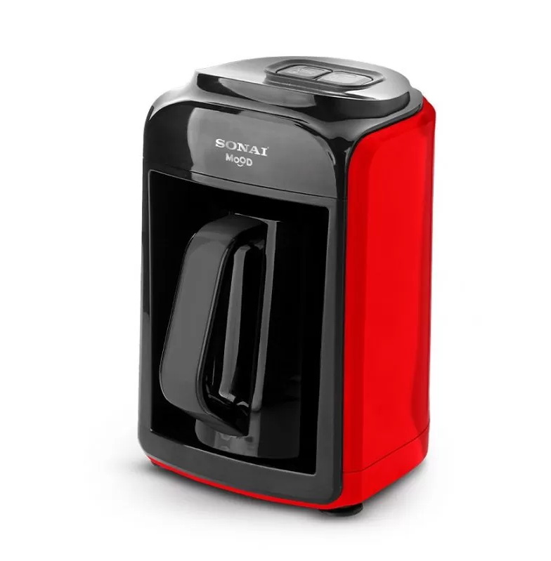 ماكينة الـ Sonai موديل MAR‑420 باللون الأحمر، بقدرة 535 واط وسعة ما تكفي حتى 4 أكواب، تحضر لك القهوة التركية بسهولة وأناقة.