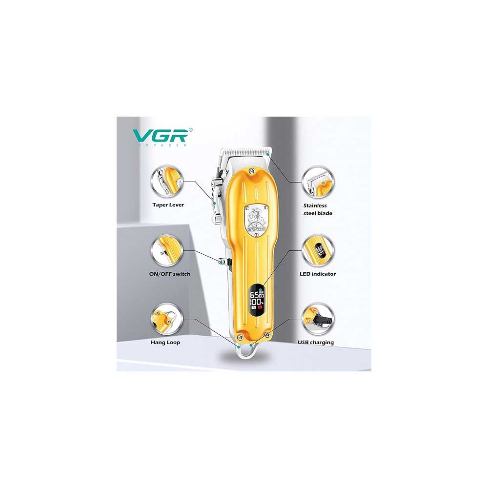 ماكينة حلاقة من في جي ار هي ماكينة حلاقة احترافية قابلة لإعادة الشحن بدون سلك وصوت هادئ للشعر وتشذيب اللحية. تم تصميم هذه الماكينة بتقنية متقدمة ومواد عالية الجودة لتوفير قطع دقيق وفعال.