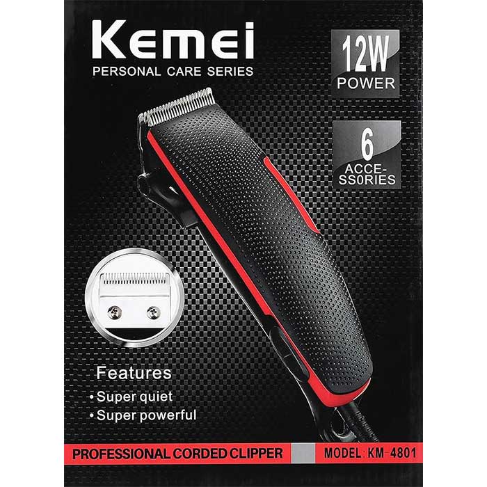 KM-4801 ماكينة حلاقة شعر كهربائية بسلك من كيمي، اسود/احمر،