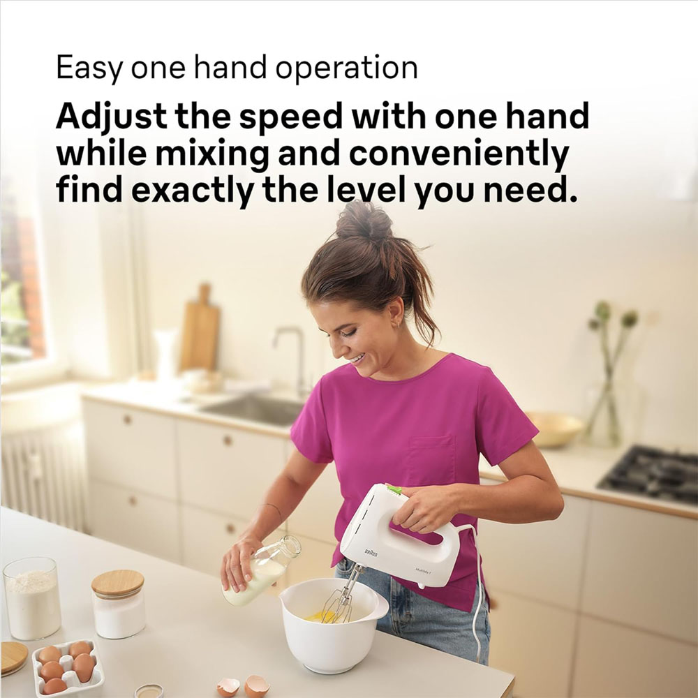 - تشغيل ميسر بيد واحدة: ببساطة، اضبط السرعة بيد واحدة أثناء الخلط، واعثر بسهولة على المستوى الذي تحتاجه بالضبط.