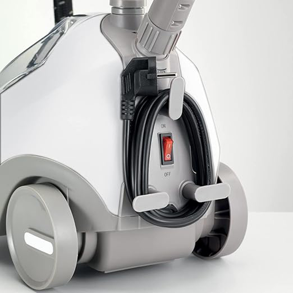 - تشمل الملحقات شماعة قابلة للطي ومشبك بنطال/القفازات. سلك طاقة بطول 1.7 متر وعمود تلسكوبي للمرونة والتحكم.