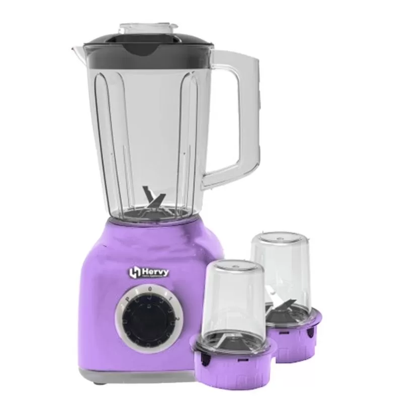 خلاط هيرفي ماكسي (موديل BMA004) بقوة 400 وات وسعة 1.6 لتر، مزوَّد بمطَحنتيّ توابل وسرعتين + تيربو، باللون الموف (بنفسجي).