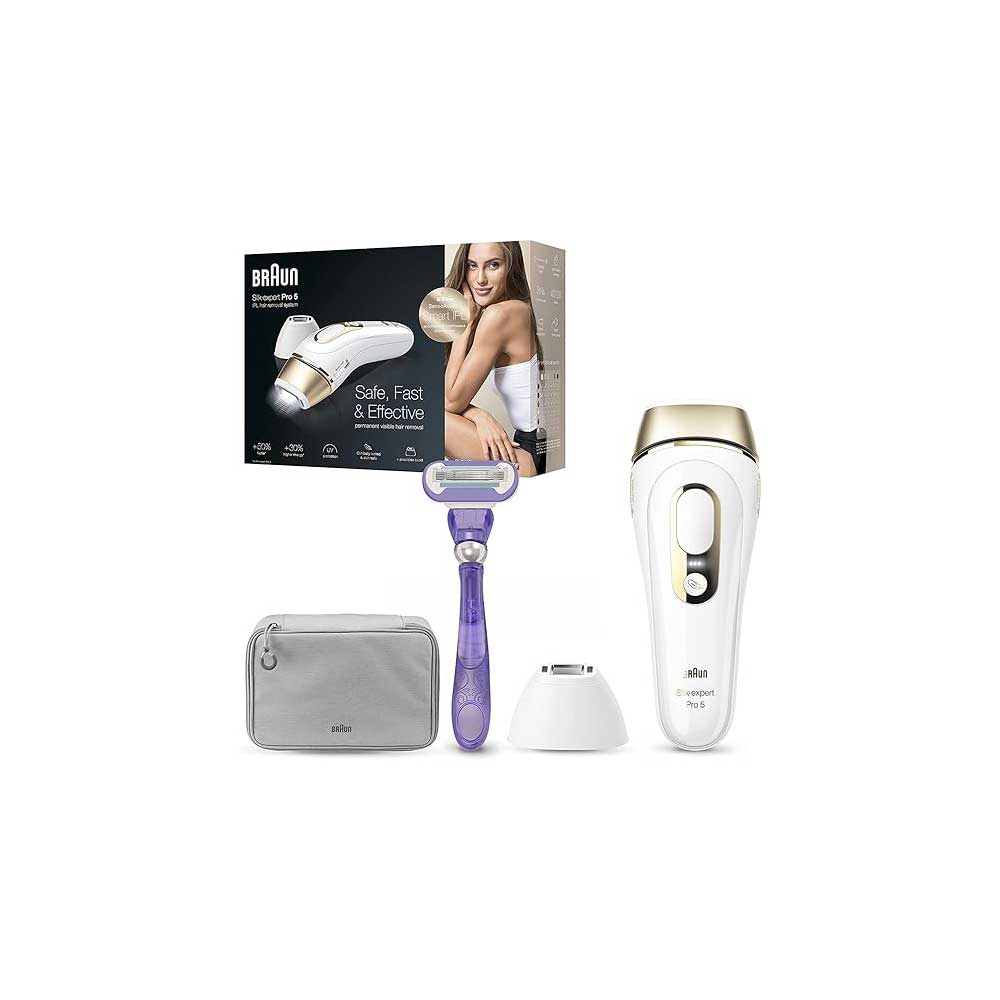Silk·expert Pro is Braun’s latest generation IPL. Silk·expert Pro 5 is the safest, fastest and most efficient IPL* for permanent hair reduction in just 4 weeks*. The safest IPL technology, clinically tested and dermatologically accredited as skin safe by an international skin health organization (Skin Health Alliance). It automatically and continuously adapts to your skin tone to ensure optimal balance between efficacy and safety† for visible permanent hair removal. The fastest IPL, it’s 2 times faster than previous Silk·expert 5: both lower legs can be treated in less than 5 minutes. It includes a premium pouch to store and transport the device conveniently and a Venus razor for the pre-treatment. New compact design, 15% smaller and 25% lighter, for easy handling and effortless treatment. 400,000 flashes, 30% more than previous Silk·expert 5. *Assessed on lower leg, armpits & bikini, following the treatment schedule. Individual results may vary. †Shared technology with Cyden.