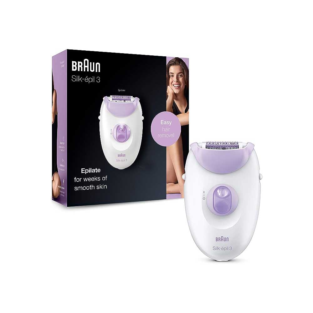 Braun Silk-épil 3 Epilator for Long-Lasting Hair Removal, 20 Tweezer System, Smartlight Technology, UK 2 Pin Plug, 3-170, White/Purple
