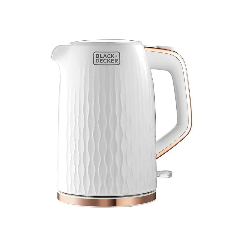غلاية لاسلكية من BLACK+DECKER بسعة 1.7 لتر وقدرة 2200 وات باللون الأبيض (الموديل JC190W)، تجمع بين الأداء القوي والتصميم العصري لتسخين سريع وآمن للمياه.