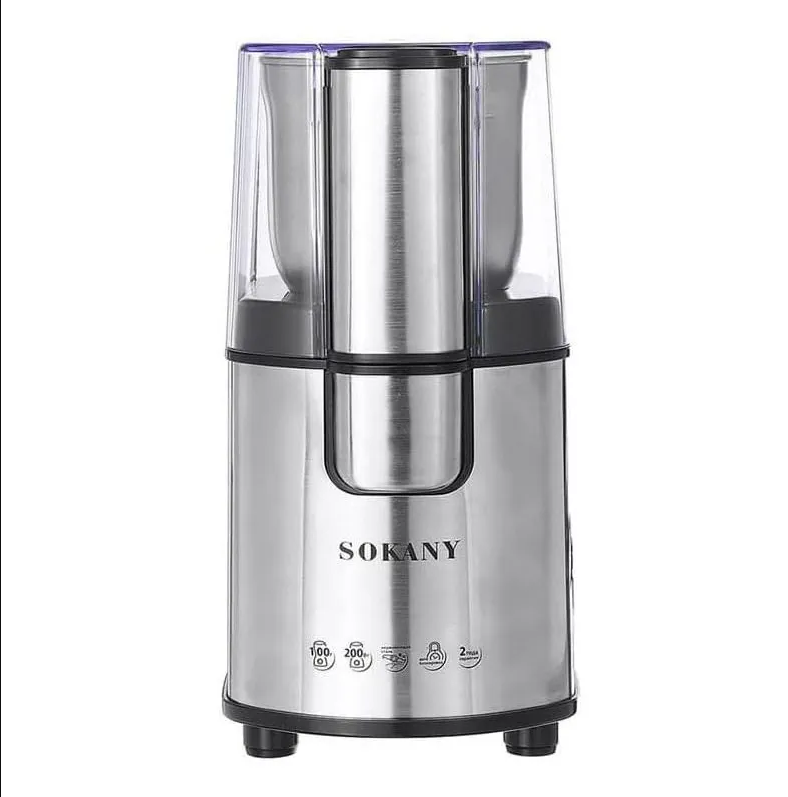 مطحنة بن وتوابل كهربائية بسعة 90 جرام ومحرك بقدرة تقريبية 200 واط، مثالية للاستخدام المنزلي لطحن القهوة أو التوابل بسرعة وكفاءة.