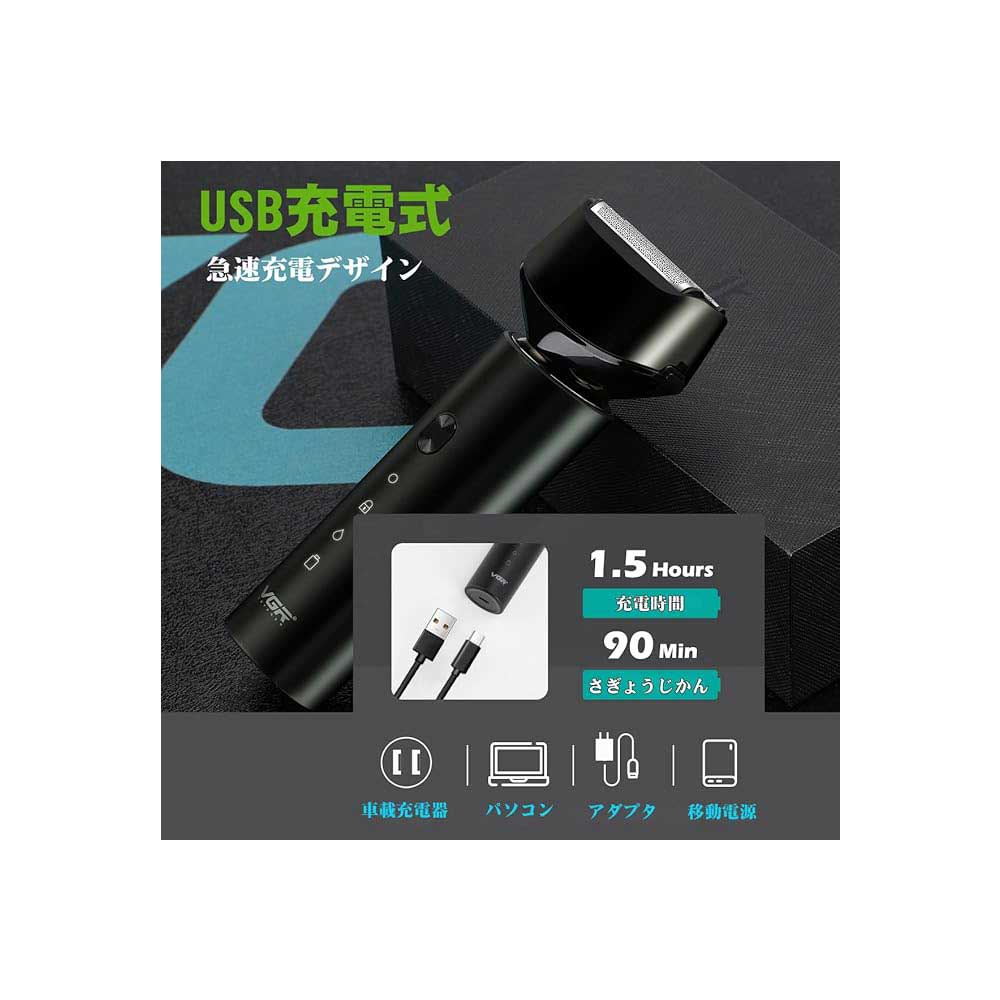 The VGR cordless rechargeable shaver boasts a sleek design and powerful performance. It features three stainless steel blades that provide a smooth, close shave. It's also waterproof, making it easy to clean.