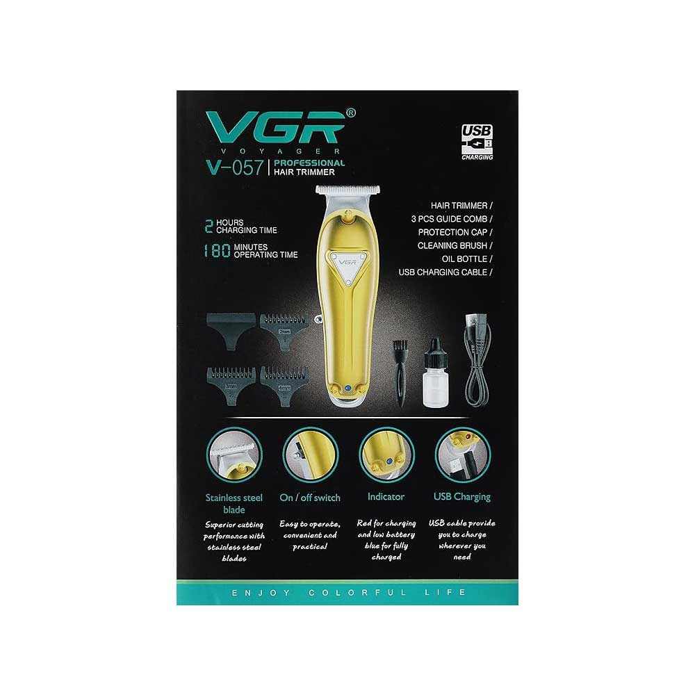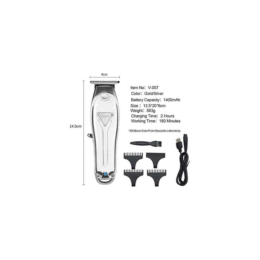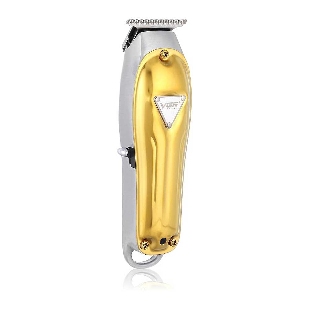 The VGR rechargeable hair clipper and trimmer in gold is a professional cordless clipper and trimmer that provides unparalleled control and precision for styling your hair. This clipper features a long-lasting, ultra-sharp stainless steel blade, three adjustable combs to accommodate a variety of hair lengths, and a USB charging system for convenient on-the-go use.
