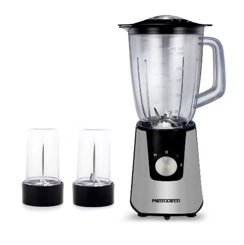 خلاط ميديا تك MT‑B18 بقوة 600 وات وسعة 1.5 لتر، مزود بمطحنة وكوب للعصر لتلبية مختلف احتياجات المطبخ.