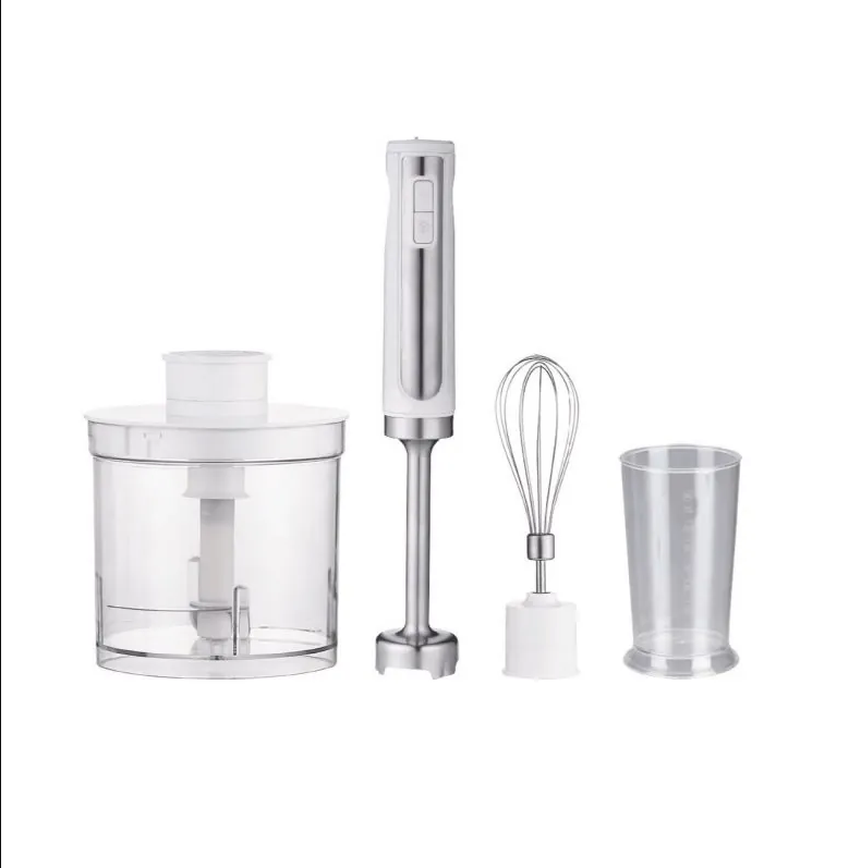 خلاط يدوي من HOME (موديل SA1388) بقدرة 800 وات وسعة 700 مل، يأتي باللون الأبيض ومع مجموعة ملحقات متعددة لتسهيل الخلط والتحضير.
