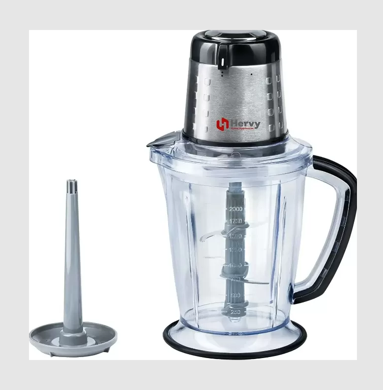 كُبّة هيرفي سباركي موديل CSP001 بقوة 800 وات، بجسم من الستانلس ستيل وسعة دورق 2 لتر، مزودة بـ 9 شفرات حادة وسرعتين لفرم وتقطيع الخضروات واللحوم بكفاءة عالية.